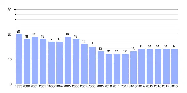 Gráfica de evolución demográfica de Chan entre 1999 y 2018 |