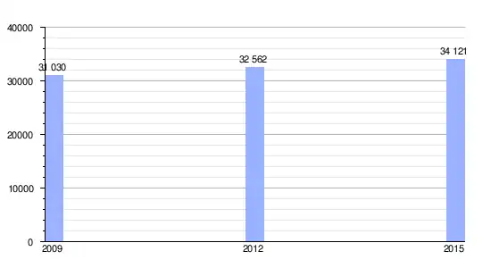 Gráfica de evolución demográfica de Chantal entre 2009 y 2015 |