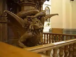 - Catedral de Arequipa: el púlpito con una escultura del diablo en su base.[1]