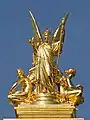 - los grupos dorados de L'Harmonie y La Poésie , coronando los pabellones del Palais Garnier