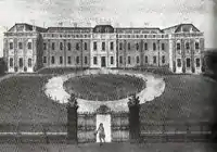 Petworth House, Sussex, vista este, representada en 1700 tras ser recién construida. De la colección del duque de Rutlanda en el Castillo de Belvoir