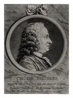 Charles de Brosses (Dijón, 7 de febrero de 1709 - París, 7 de mayo de 1777) fue un magistrado y erudito francés que estudió leyes con miras a la magistratura. Su mente, sin embargo, se inclinó hacia la literatura y la ciencia.