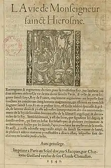 - Louis Lassere, La Vie de Monseigneur Sainct Hierosme (1541) (anteriormente impreso por Josse Bade ca. 1529)