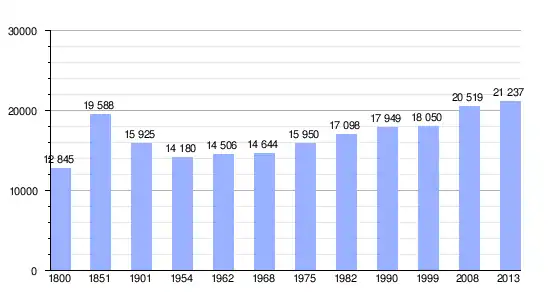 Gráfica de evolución demográfica de Chemillé-en-Anjou entre 1800 y 2013 |