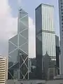 El edificio fue proyectado por el reconocido arquitecto argentino César Pelli y por Leo A. Daly, y está considerado tanto por su plasticidad como por su integración en el entorno.[2] Consultaron con un maestro del Feng Shui con el fin de que el reparto del edificio absorbiera las energías negativas que procedían del "cuchillo" del Banco de China.[1]