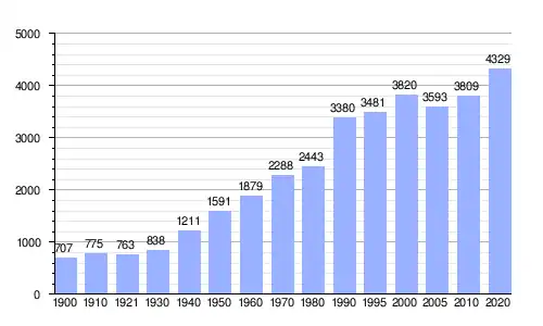 Gráfica de evolución demográfica de Chiapilla entre 1900 y 2020 |