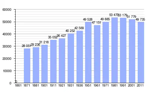 Gráfica de evolución demográfica de Chioggia entre 1861 y 2011 |