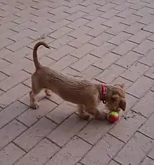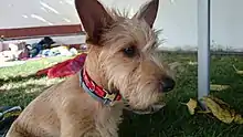 Perra de la raza Chiweenie. Se pueden apreciar las orejas en punta de los Chihuahua, morro alargado de los Dachshund aunque no llega a ser todo lo largo de la raza original.