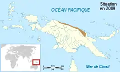 Es endémica de la costa norte de la isla de Nueva Guinea.