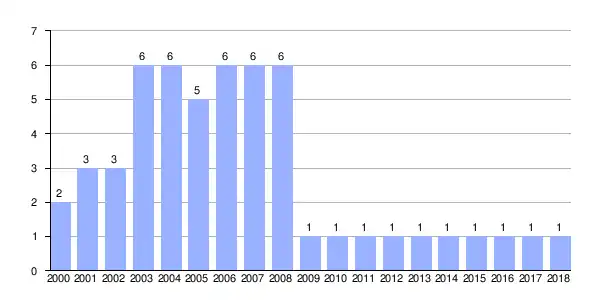 Gráfica de evolución demográfica de Chousas entre 2000 y 2018 |