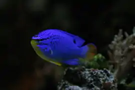 Es un pez de mar que habita arrecifes entre 1 y 10 metros de profundidad.[2] Se le encuentra en grupos entre rocas y corales de lagunas protegidas y arrecifes horizontales.[3]