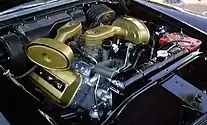 En 1960, el 300F introdujo un nuevo motor Wedge de 413 plg³ (6,8 L) que entregaba 375 HP (380,2 CV) en forma estándar. Para aumentar la potencia a bajas y medias revoluciones por minuto, se derivó un colector de admisión especial de "pistón cruzado". En lugar del colector de admisión central de un motor V8 normal con carburadores en la parte superior, el pistón cruzado consistía en dos pares de tubos largos de 30 plg (762 mm) sincronizados que se entrecruzaban para que cada conjunto alimentara el lado opuesto del motor. Los carburadores y filtros de aire colgaban de los lados del motor sobre los huecos del guardabarros. Estos tubos largos se ajustaron para que las resonancias en la columna de aire ayudaran a forzar la entrada de aire en los cilindros a esas velocidades del motor. También eran nuevos los cuatro asientos individuales de cuero tipo butaca con una consola completa desde el tablero hasta el respaldo del asiento trasero. Los asientos delanteros giratorios fueron equipados de serie.[7]