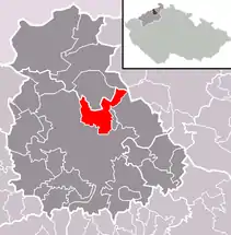 Se encuentra ubicada al noreste de la región, sobre los montes Metálicos, cerca de la orilla de los ríos Bílina y Elba, y del estado alemán de Sajonia.[1]