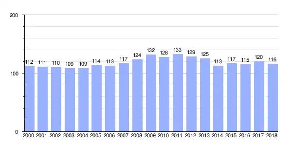 Gráfica de evolución demográfica de Churío[1] entre 2000 y 2018 |
