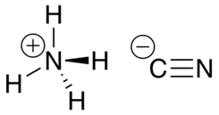 El cianuro de amonio se descompone en amoniaco y cianuro de hidrógeno; a menudo formando un polímero negro de cianuro de hidrógeno: