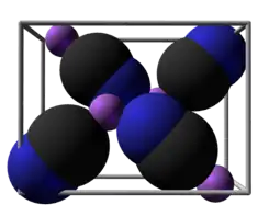 El compuesto se descompone en cianamida y carbono cuando se calienta a una temperatura cercana pero inferior a 600 °C. Los ácidos reaccionan para dar cianuro de hidrógeno.[3]