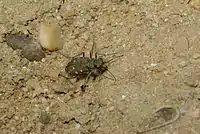 Las larvas también son depredadoras, excavan pequeñas galerías verticales en el suelo arenoso donde acechan con sus fuertes mandíbulas asomando fuera. Al paso de arañas, ácaros, hormigas y otros pequeños insectos las capturan y las introducen en la galería donde son devoradas.[1]
