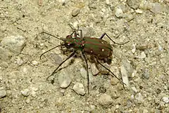 Como Cicindela campestris es frecuente encontrarla en los caminos de bosques, en los linderos y en las superficies arenosas, en especial en las zonas más cálidas.