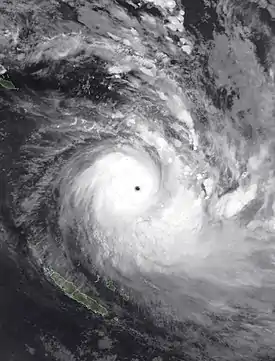 ![]() Ciclón Harold en intensidad máxima poco después de cruzar la isla de Pentecostés en Vanuatu | ||