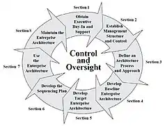 El equipo de arquitectura también genera un plan de secuencia para la transición de sistemas, aplicaciones, y prácticas de negocios asociadas que son indicadas en un análisis detallado. La arquitectura se emplea en el control de la planificación de capital e inversión. Los procesos de ingeniería de la empresa y el programa de gestión de procesos se realizan a través de proyectos priorizados, proyectos incrementales y la inserción de nuevas tecnologías emergentes. Por último, las arquitecturas se mantienen mediante una modificación continua para reflejar la base actual de la empresa y los objetivos de negocio, metas organizacionales, visiones, tecnología e infraestructura. [1]