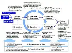 El ciclo de vida empresarial es un concepto clave de la arquitectura empresarial, de la Ingeniería de la empresa [2] y la Ingeniería de Sistemas. [3] El proceso de arquitectura empresarial esta muy relacionado con procesos como el ciclo de sistemas de gestión o el sistema de ciclo de desarrollo de vida, y tiene propiedades similares a las que podemos encontrar en el ciclo de vida del producto. [4]