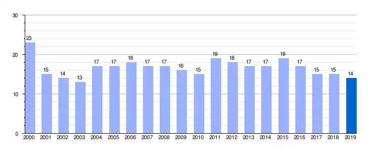 Gráfica de evolución demográfica de Cidad de Valdeporres entre 2000 y 2019 |