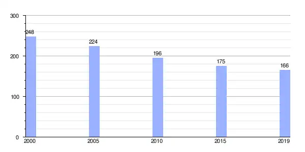Gráfica de evolución demográfica de Cillero entre 2000 y 2019 |