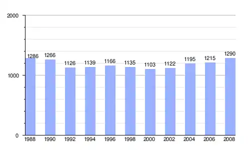 1900 | 1910 | 1920 | 1930 | 1940 | 1950 | 1960 | 1970 | 1980 | 1990 | 2000 | 2007 |