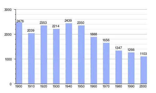 Gráfica de evolución demográfica de Cillorigo de Liébana entre 1900 y 2000 |
