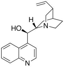 - Esta obra contiene una traducción derivada de «Cinchonidine» de Wikipedia en inglés, publicada por sus editores bajo la Licencia de documentación libre de GNU y la Licencia Creative Commons Atribución-CompartirIgual 3.0 Unported.