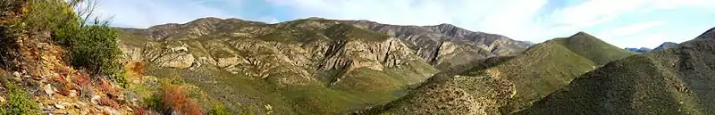 - Montañas Baviaanskloof (holandés: Valle de los babuinos). Dan nombre a la mega reserva de Baviaanskloof, de 50.000 km², entre las sierras de Baviaanskloof y Kouga.