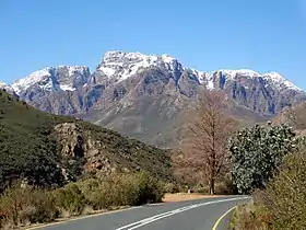 - Montañas Winterhoek (montañas del lugar invernal), altitud máxima de 2.077 m (pico Groot Winterhoek), al norte de la localidad de Tulbagh, cerca de Porterville.[3] Área protegida de 306 km², con 192 km² de reserva natural con leopardos, caracales y ginetas. Entre las aves, el endémico saltarrocas del Cabo.