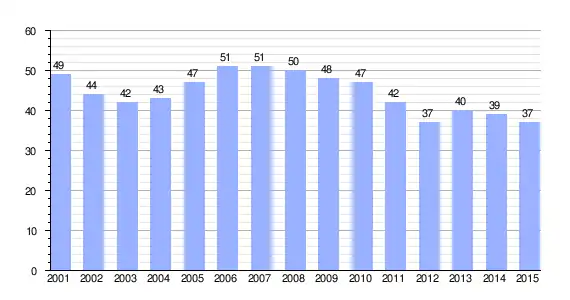 Población de derecho (2000-2015) según los censos de población del INE a 1 de enero de cada año.[1] |