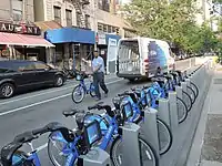 Citi Bike es un sistema de intercambio de bicicletas públicas de gestión privada que sirve en parte de la ciudad de Nueva York. Es el programa de intercambio de bicicletas más grande en los Estados Unidos.[1] El sistema se inauguró el 27 de mayo de 2013, con 330 estaciones y 6.000 bicicletas.[2] Alta Bicycle Share fue seleccionado en septiembre de 2011 para desarrollar y operar el sistema de uso con la tecnología de Bixi Montreal.[3] El sistema «Citi Bike», que opera sin subsidios de la ciudad, pertenece a Citigroup, que gastó US $41 millones para ser su patrocinador principal durante seis años.[4] Al 28 de febrero de 2014, el número total de abonados anuales es de 97.864. En octubre de 2013, ciclistas de Citi Bike hicieron cerca de 42.000 viajes al día.