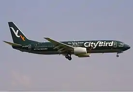 ![]() Boeing 737 de CityBird aterrizando en el Aeropuerto de Maastricht Aachen | |||||
