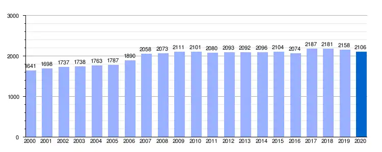 Gráfica de evolución demográfica de Ciudad Jardín Virgen del Milagro entre 2000 y 2020 |