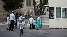En la periferia de la Ciudad Vieja se han establecido en las últimas décadas tres pequeños asentamientos israelíes: Beit Hadassah, Beit Romano y Avraham Avinu, de los cuáles se ha dicho que forman un "barrio judío vagamente contiguo".[29][30] Todos los asentamientos israelíes son ilegales según el derecho internacional, dado que el Cuarto Convenio de Ginebra expresa explícitamente que "la Potencia ocupante no podrá efectuar la evacuación o el traslado de una parte de la propia población civil al territorio por ella ocupado". A finales del siglo XIX había una zona judía en el barrio de los cristaleros.[7][31]