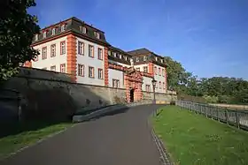 El edificio barroco se construyó a partir de una abadía de la Orden de San Benito alrededor del año 1050. Fue residencia temporal de los príncipes electores de Maguncia, más tarde "fortaleza" de la Confederación Germánica. En 1919 (Tratado de Versalles (1919)) fue desmantelada por las tropas francesas. Formaba parte de un sistema militar de fuertes de la ciudad de Maguncia, llamado Festung Mainz (fortaleza de Maguncia).
