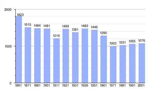 Gráfica de evolución demográfica de Civita d'Antino entre 1861 y 2001 |