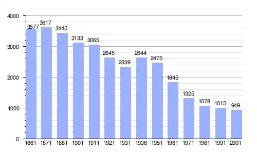 Gráfica de evolución demográfica de Civitanova del Sannio entre 1861 y 2001 |