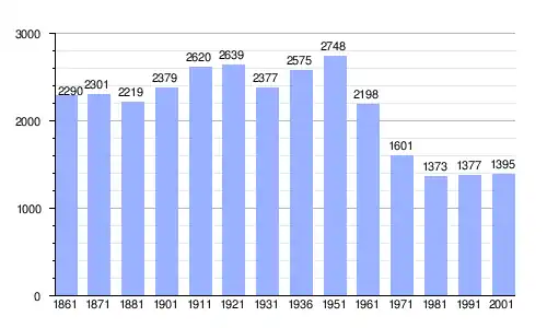 Gráfica de evolución demográfica de Civitaquana entre 1861 y 2001 |