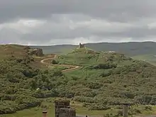 - Castillo Dirlot , cerca de Watten (Caithness), Caithness se llevó a cabo originalmente por los Cheynes, luego por el clan de Gunn , a continuación, por el clan de Sutherland y luego por el clan Mackay desde 1499 en adelante