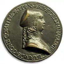 ![]() Medalla retrato de Clara Gonzaga por Bartolomeo Melioli. | ||