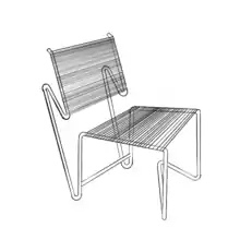“Un solo tubo de acero constituye la estructura general; otro, soldado, como atravesaño en la parte inferior trasera. Respaldo y asiento de cordón de plástico en color. Los tubos van pintados al duco.”