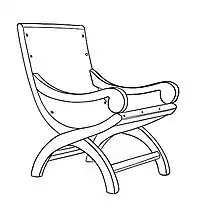 La silla se describe como un bajo y cómodo asiento ligeramente inclinado hacia atrás, inspirada en los asientos yucatecas, forrado en cuero o tapicería. Su silueta forma una singular “X” en los costados conformada por una sola curva entre el asiento y el respaldo y la curvatura de las patas. El aprovechamiento de la madera en sus ensambles es otro de los elementos que hacen a este asiento tan característico: la curvatura de sus elementos se generaba con tablas de pequeña sección que tenían una gran superficie de contacto entre cada pieza generando poco desperdicio y garantizando un ensamble resistente.