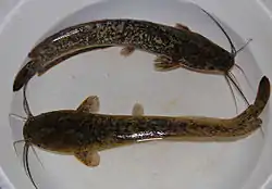 - Esta obra contiene una traducción derivada de «Clarias gariepinus» de Wikipedia en catalán, publicada por sus editores bajo la Licencia de documentación libre de GNU y la Licencia Creative Commons Atribución-CompartirIgual 3.0 Unported.