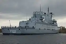 F225 | Rheinland-Pfalz | Lürssen | 29 de enero de 2015[19] | 24 de mayo de 2017[20] | planeada para el 18 de agosto de 2019 | En pruebas |