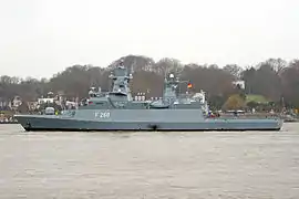 F261 | Magdeburg | Lürssen-Werft | 19 de mayo de 2005 | 6 de septiembre de 2006 | 22 de septiembre de 2008 | En servicio activo |