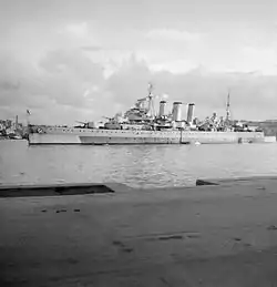 El diseño inicial, estaba llamado a portar dos montajes óctuples de cañones automáticos antiaéreos QF 2 de dos libras Mk.VIII, pero no fueron montados inicialmente para ahorrar peso, y montó QF 2 de dos libras Mark II en montajes simples. El espacio, fue aprovechado para montar una catapulta rotatoria y una grúa que le permitía operar aeronaves, aunque de nuevo, no se montó inicialmente.