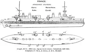 - Gloire, botado el 27 de junio de 1900. Alistado en 1904. Baja y desguace en 1922.